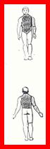 3. Pentru perineu, anus, organe genitale, se intrebuinteaza fasa in forma de T. Ea se compune din doua parti: prima, lunga care inconjoara circular abdomenul, iar a doua care incaleca in spate prima circulara de pe abdomen si care va trece printre picioare in sus pe fata abdomenului, unde fiecare cap al fesei se leaga pe circulara abdominala.
