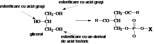 Natura substituentului X, fixat la nivelul acidului fosforic precizeaza natura fosfogliceridului.