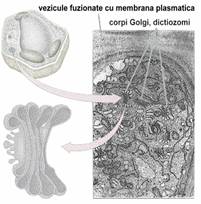 Figura 5. Aparatul Golgi - dictiozomi - formati din cisterne aplatizate si vezicule delimitate de membrane lipoproteice