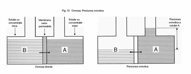 Aplicand solutiei concentrate o presiune superioara presiunii sale osmotice,se obtine procesul invers osmozei,adica apa continuta in solutia mai concentrata va trece fara sarurile continute prin membrana semipermeabila in solutia mai putin concentrata,pierzandu-sisalinitatea si devenind pura -Fig.16