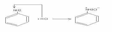 Anilina se dizolva, insa, complet in solutie de acid clorhidric, deoarece se formeaza un compus ionic, solubil in apa: