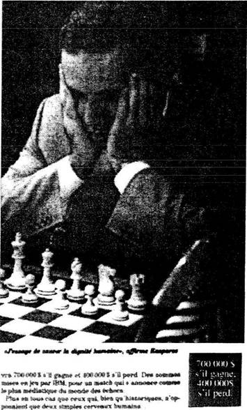 Iar provocarea pare sa mearga mult dincolo de mizele unei simple partide de sah. Tine de o dimensiune aproape etica, dupa cum sublinia Kasparov inaintea acestei partide la varf: "intr-o oarecare masura, cred ca incerc sa salvez demnitatea umana disputand aceasta partida. Pe de alta parte, acest sistem a fost creat de o echipa de cercetatori si oameni de stiinta, ei sunt adevaratii mei adversari. Sa vedem ce au reusit sa puna la punct, in materie de calculatoare, pentru a sfida forta spiritului uman'.