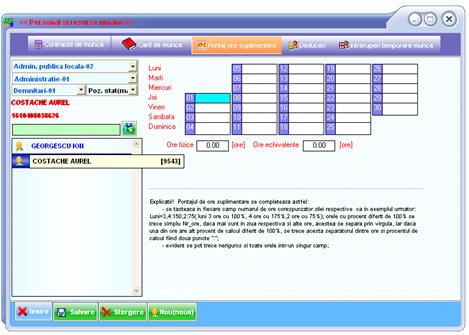 ,Pontaj ore suplimentare' -se tasteaza in fiecare camp numarul orelor suplimentare corespunzatoare unei zile.