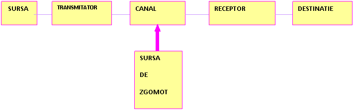 Reprezentata in figura 1, schema Shannon-Weaver reprezinta avatarurile unui MESAJ care, elaborat de un TRANSMITATOR sub forma unor SEMNALE , ce parcurg un CANAL , pe traseul caruia se confrunta cu primejdia distorsionarii lor ca urmare a interventiei unei surse de ZGOMOT, dupa care parvin la RECEPTORUL ce le decodifica , restituind mesajului forma initiala si incredintandu-l astfel DESTINATARULUI , aceasta schema ne ajuta sa intelegem mai bine esenta orcarei comunicari de la transmiterea ereditara a caracterelor biologice, pana la discursul poetic,muzical sau cinematografic.