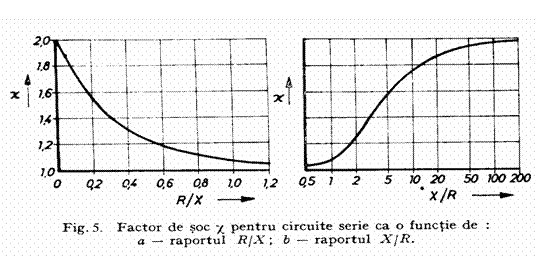 c) Deoarece factorul de soc prezentat in fig.5 este pentru o sursa care alimenteaza scurtcircuitul printr-un circuit serie R si X, in retelele buclate se alege una din aproximarile urmatoare:
