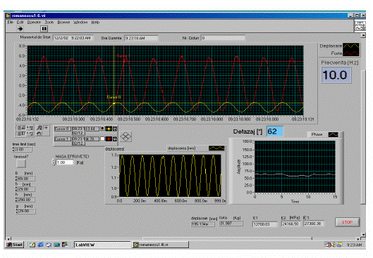 Viteza de calcul in bucla este limitata de resursele de viteza si de memorie ale calculatorului. S-au efectuat citirile datelor intr-o bucla cu o frecventa de 200 Hz. La frecventa de 1Hz de aplicare a sarcinii, diagramele care le obtinem sunt compuse din 200 de puncte, suficient pentru identificarea tuturor inflexiunilor curbei.