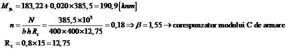 Pentru calculul armaturilor longitudinale folosim momentele de proiectare calculate anterior la care adaugam momentul datorat excentricitatii fortei axiale N ,separat pe cele doua directii,y si z .