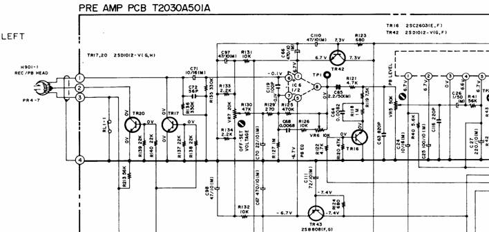 R136 = R135 = 330 KΩ se elimina si in locul lui R135 se planteaza o rezistenta de 165 KΩ, pelicula metalica, reducand astfel zgomotul termic al rezistentei de amortizare a circuitului rezonant al capului. Tinand cont de parametrii acestui circuit (inductanta capului este 475 mH, rezistenta capului este 625 Ω, capacitatea parazita a cablului este fix 22 pF, capacitatea de acord este C72 = 56 pF) rezulta ca este acordat pe 26 KHz si asigura o ridicare de 6.6 dB.