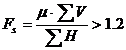Se defineste drept grad de siguranta la alunecare a taluzului dupa cercul considerat raportul dintre momentul fortelor care asigura stabilitatea masivului asezat deasupra suprafetei de alunecare si momentul fortelor care produc alunecarea lui. Momentele se iau fata de centrul O al cercului de alunecare. Explicitand valorile fortelor si luand in considerare echilibrul intregului ansamblu de fasii se obtine expresia:
