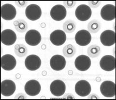 Toate capsulele BGA au fost apoi inspectate cu raze X. In figura 2.5. a/p se prezinta imaginile mai reprezentative ale acestor inspectii, pe coloana din stanga fiind ilustrata situatia la lipirea in mediul ambiant, pe coloana din dreapta fiind prezentate aceleasi BGA-uri in cazul utilizarii azotului. Analiza imaginilor a fost facuta cu ajutorul programului rezident pe calculatorul ce deserveste echipamentul Analizor cu raze X.