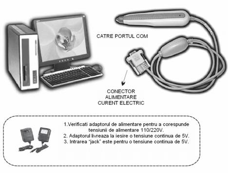 In primul rind asigurati-va ca scanner-ul este conectat ferm la computerul gazda, cind conexiunea este buna scanner-ul va emite un sunet tip "bip" lung. Cind butonul este apasat LED-ul trebuie sa lumineze.