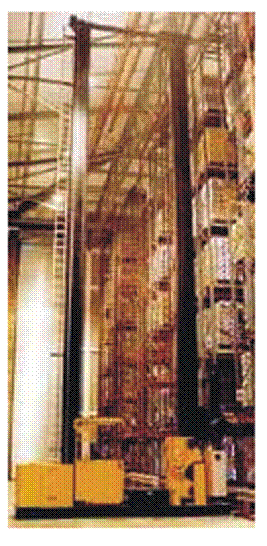 Translator stivuitor - instalatie stivuitoare, cu coloana verticala, care se deplaseaza in culoarul dintre rafturi.