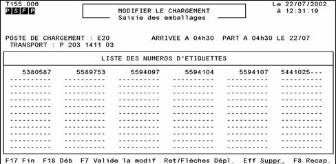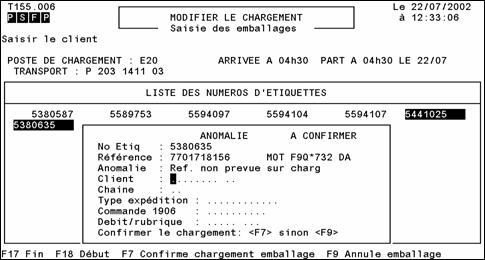 Descrierea subprocesului: O data ce toate ambalajele au fost distribuite la postul de incarcare, agentul de expeditie va inregistra toate etichetele ambalajelor pregatite pentru incarcare. Aceasta operatie va permite, in primul rand, atribuirea acestor ambalaje incarcarii, iar mai apoi controlul pregatirii. Sistemul afiseaza intr-adevar toate anomaliile pe care le detecteaza cu privire la ambalaje. Operatorul va trebui, inainte de a valida incarcarea, sa valideze toate anomaliile care au survenit in sistem.