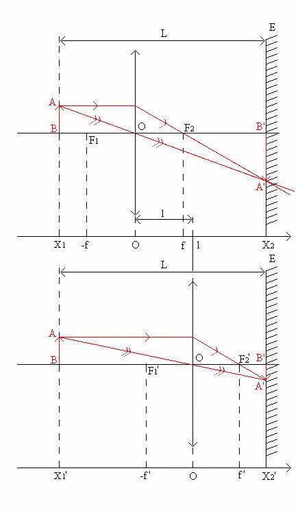 Am ales o distanta L intre sursa si ecran, care se mentine constanta in cursul unei determinari.Ea trebuie aleasa suficient de mare, L>4f, pentru a obtine 2 imagini clare pe ecran.Am cautat cele 2 pozitii ale lentilei pentru care se obtin imagini clare si am masurat pe bancul optic distanta l dintre aceste pozitii.Alegand diferite distante L dintre obiectul luminos si ecran, am masurat diferite distante l intre pozitiile lentilei care dau 2 imagini clare.Astfel pentru a determina distanta focala f am folosit relatia: