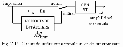 e. circuitele de intarziere: au rolul de a introduce o intarziere variabila si etalonata intre momentul declansarii bazei de timp si momentul aplicarii semnalului de studiat pe placile de fenomen (cca.150 ns);