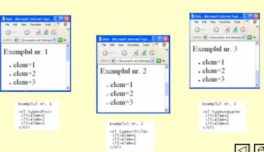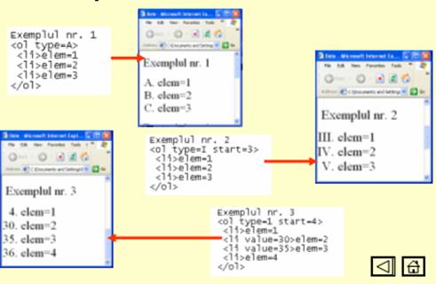 a) TYPE="valoare" - modul de numerotare a elementelor din lista