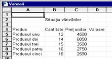 Trebuie precizat ca textele pe care le-ati introdus in coloana A au ramas inregistrate in intregime in celulele coloanei A si sunt trunchiate doar afisarile lor deoarece depasesc latimea coloanei. Pentru a va convinge de acest lucru, pozitionati cursorul pe una din celulele din domeniul A5:A9 si observati in linia de introducere textul in intregime. Pentru ca textele sa fie afisate complet in tabel, trebuie sa mariti latimea coloanei.