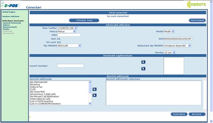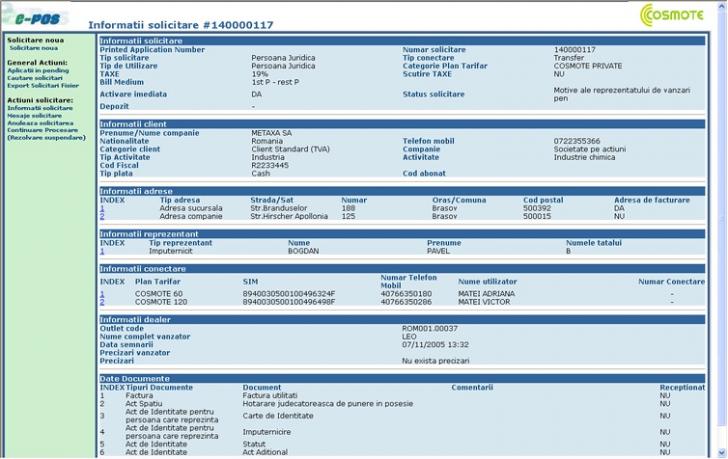 Sistemul E-POS respectiv are ca scop Activarea Conectarilor in reteaua COSMOTE.