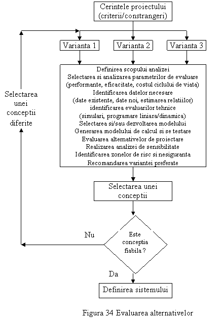 Fiind dat un numar de alternative, procedura de evaluare progreseaza prin pasii generali ilustrati in figura 34 si descrisi dupa cum urmeaza: