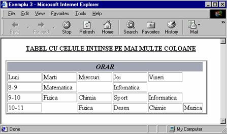 Exemplul 3: tabel cu celule intinse pe mai multe coloane