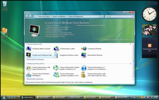 Primul contact al utilizatorului cu versiunea Windows Vista este realizat prin intermediul "Centrului de intampinare". In imaginea din Figura 1 putem vedea noutatile aparute odata cu Windows Vista.