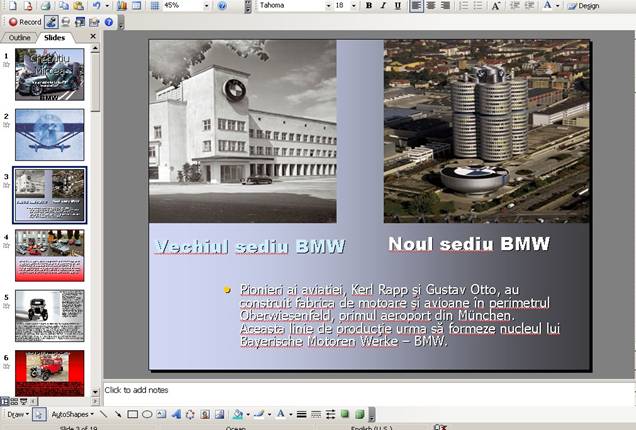 Diapozitivul 2: Contine date si localizarea vechiul dar si noul sediu BMW