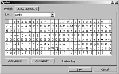 Simbolurile si caracterele speciale nu fac parte din setul standard de caractere si, ca atare, nu pot fi gasite pe tastatura. Literele cu accent (cum ar fi litera ), litera greceasca m si simbolul pentru copyright © sunt doar cateva exemple. Desi aceste caractere nu se afla pe tastatura, Word le poate insera totusi in documentele pe care le creati.