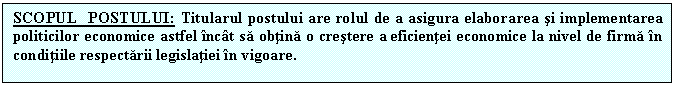 Postul este cea mai simpla veriga organizatorica care cuprinde obiective, sarcini, competente si responsabilitati. Inseamna ca titularul postului urmareste realizarea anumitor scopuri pentru care se indeplinesc anumite activitati a caror finalitate este influentata de competenta, adica de autoritatea formala care exprima limitele dreptului de actiune pentru care exista obligatia de indeplinire.