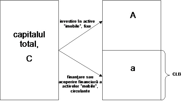 Capitalul de lucru brut (vezi Fig. 1.1) se determina ca diferenta intre capitalul total si activele imobilizate, ceea ce inseamna ca el reprezinta acea parte din capitalul total al unei firme corespunzatoare finantarii sau acoperirii financiare a activelor circulante.