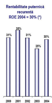 Rezultatul net dupa impozitare este in crestere cu 39% (in termeni reali) fata de anul precedent. Acest rezultat include impactul aplicarii IAS 18 (amanarea comisioanelor) respectiv IAS 19 (beneficii pentru pensionare).Rentabilitatea a ramas inalta, cu un indice ROE (Return On Equity - ' randamentul capitalurilor proprii ') de 30% in 2004.