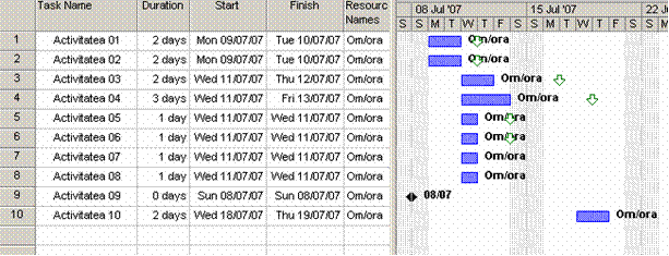 2. Suprapunerea activitatilor : presupune cautarea acelor activitati care pot fi realizate simultan, tinandu-se cont de interconditionarile dintre activitati si resursele alocate pentru activitati.