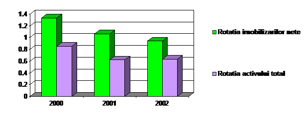 Rata activelor imobilizate=In/At masoara gradul de investire a capitalului fix. Nivelul ei este ridicat datorita ponderii mare a dotarilor tehnice, echipamente, utilaje si instalatii. Rata activelor imobilizate creste in 2002 la 67,41% fata de 59,06% in 2001 datorita achizitionarii de imobilizari corporale. Nivelul acestei rate este influentat nefavorabil de inregistrarea cheltuielilor lunare cu amortizarea care diminueaza valoarile ramase ale activelor imobilizate.