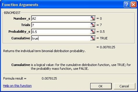 ca in campul Cumulative vom introduce True. Vom obtine 007813 care este probabilitatea