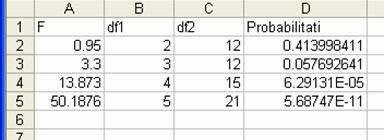 Pentru calculul probabilitatii selectati celula D2 , introduceti functia FDIST din meniul Insert optiunea Function.