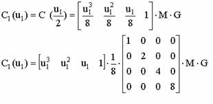 C2(u2) = C((1 + u2)/2) = [u23 u22 u2 1] * S2 * M * G