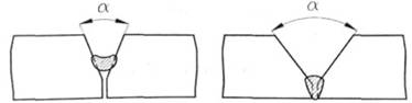 Geometria marginilor asigura conditiile necesare pentru patrunderea cordonului la radacina cusaturii. In cazul tesirii cu un unghi a, prea mic, nu exista posibilitatea realizarii radacinii, dupa cum se observa in figura 4 (cazul a), spre deosebire de cazul b, la care tesirea s-a executat corespunzator.