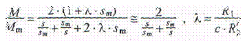 Cuplul direct Md produs de campul magnetic invartitor direct se deduce cu relatia (1.19), iar cel invers Mi, cu aceeasi relatie in care se inlocuieste s cu 2 -s. Aceste cupluri se reprezinta grafic in figura (17.12) cu linii punctate. Cuplul rezultant M al masinii monofazate va fi Md-Mi, reprezentat grafic cu linia mai groasa in figura 1.12. Se constata ca masina asincrona monofazata nu are cuplu de pornire (M=0, la s= 1). Daca la pornire se da un impuls mecanic rotorului, intr-un sens sau altul, motorul porneste in sensul respectiv ( daca Mimpuls>Mr) prinzandu-se in punctele A sau B (figura de mai jos)