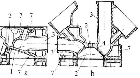 1-bazin superior; 2-bazin inferior; 3-parte de racire; 4-conducta; 5-robinet de evacuare; 6-gura de umplere cu buson si supapa de siguranta.