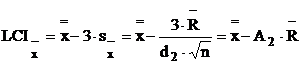 Limitele de control corespunzatoare diagramei amplitudinilor se obtin din relatiile: