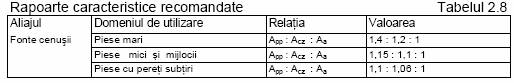 In tabelul 6.4 se dau temperaturile de turnare recomandate pentru fontele cenusii.