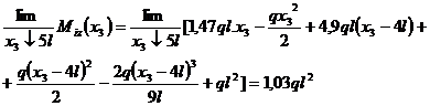 Rezulta calculul corect al fortelor de reactiune: VA = 1,47 ql ;