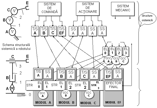 Sistemele de fabricatie in care robotul executa operatii tehnologice cu scule purtate pot cuprinde si instalatii aducatoare / de evacuare cu dispozitive de transfer si roboti de manipulare a obiectelor si dispozitivelor de lucru in operatii de "servire".