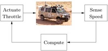 Sistemul de control de croaziera a unei masini este un sistem de feedback comun care se intalneste in viata de zi cu zi. Sistemul incearca sa mentina o viteza constanta, in prezenta perturbatiilor in principal, cauzate de schimbari in panta a unui drum. Controlerul compenseaza pentru aceste necunoscute de masurare, viteza masinii si regleaza acceleratia corespunzator.