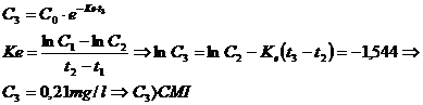 a). C1=4,17 mg/l ; C2=1,08 mg/l ; t1=1 h ; t2=2 h