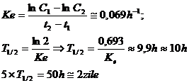 NF: T1/2=0,693/Ke = 0,693/0,0934=7,4 h;