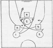 atacul aruncand din apropierea cosului. Cei doi atacanti (1 si 2 ) vor circula ocupand planuri si culoare diferite.