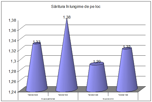 Ca si la probele anterioare, grupa experimentala obtine aceleasi rezultate semnificative care demonstreaza faptul ca mijloacele atent selectionate, jocurile dinamice diverse, care au angrenat complex organismul in efort au fost eficiente, indeplinindu-si obiectivele stabilite.