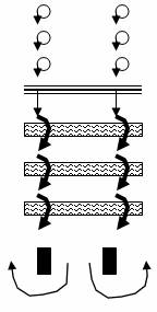 Pe diagonala; in zig-zag. |