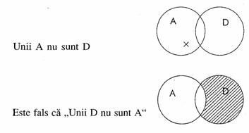 Sa revedem acum, cu ajutorul diagramelor Venn, inferentele imediate studiate mai inainte. Din reprezentarile corespunzątoare ale acestora reiese validitatea inferentelor in cauza, respectiv ce fel de concluzii suntem indreptatiti sa tragem.