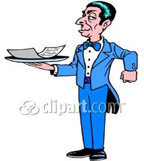 - menajul (presaratoare, sare, piper), numerele de masa, scrumiere si vaze de flori se preiau de la oficiu si se transporta in salon pe tava acoperita cu un servet, separat pe tipuri de obiecte. Ele se plaseaza la mijlocul mesei sau intr-un loc accesibil tuturor clientilor.